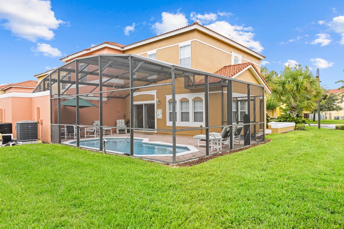 Üdv a Solara Resortban található 4 hálószobás sorházunkban! – Élvezd a tematikus hálószobákat és a nyitott elrendezésű nappalit. - Saját medence fedett terasszal, szabadtéri étkezővel és grillezővel. - Teljes üdülőhely-hozzáférés, amely magában foglalja a fűtött medencét, a pezsgőfürdőt, a fitneszközpontot és még sok mást. - Mindössze néhány perc autóútra a Disney és más látnivalók, tökéletes kiindulópont a családi szórakozáshoz. - Az ingyenes Wi-Fi, az okos tévék és a parkolás kényelmes és kapcsolódó tartózkodást biztosít minden vendég számára. – Pihenj, töltődj fel, és gyűjts emlékeket a napsütötte Orlandóban!