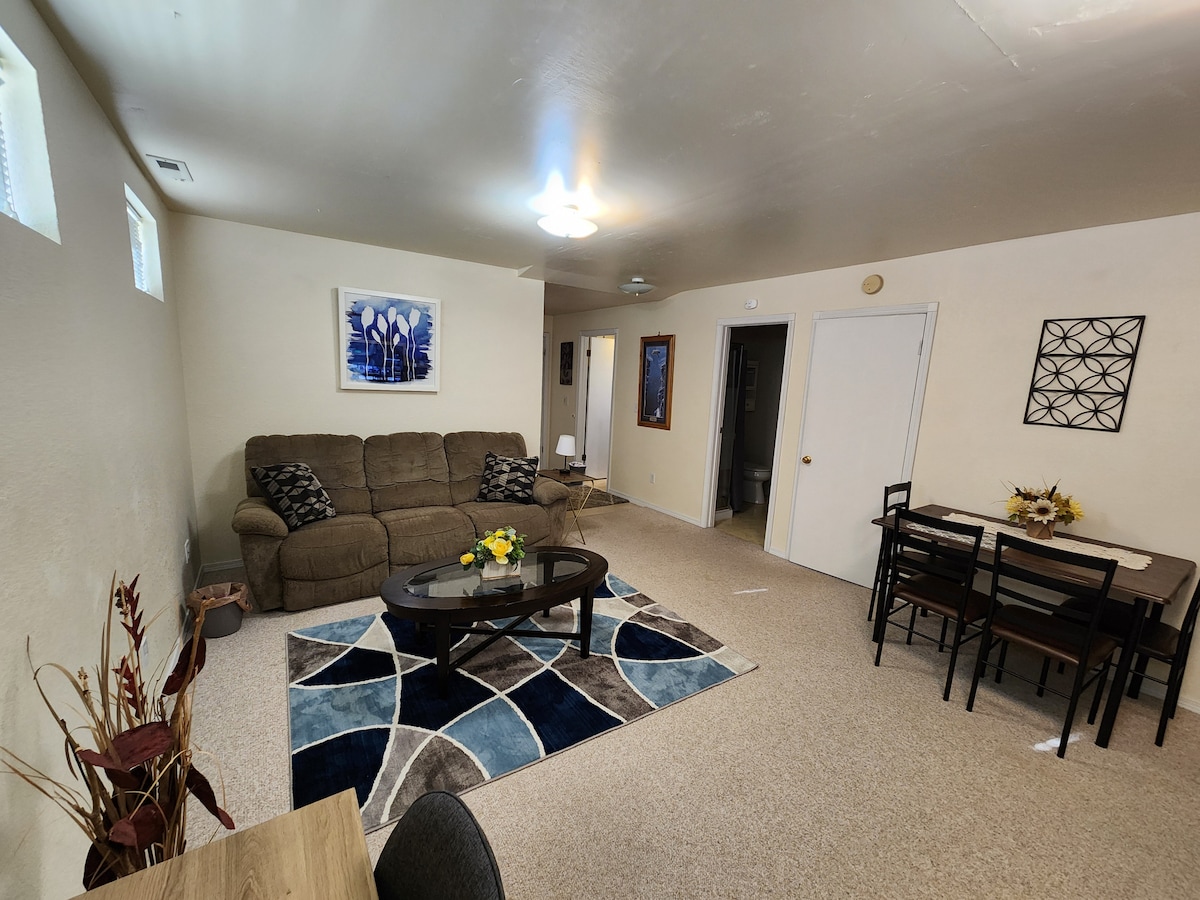 Enjoy a peaceful getaway in our cozy suite or use it as a centrally-located home base for unlimited adventures all over the state! This accessible 600 square foot suite is attached to our home with its own separate private entrance, self check-in via keypad, a small covered patio area and plenty of available parking. Trailer parking also available upon request.