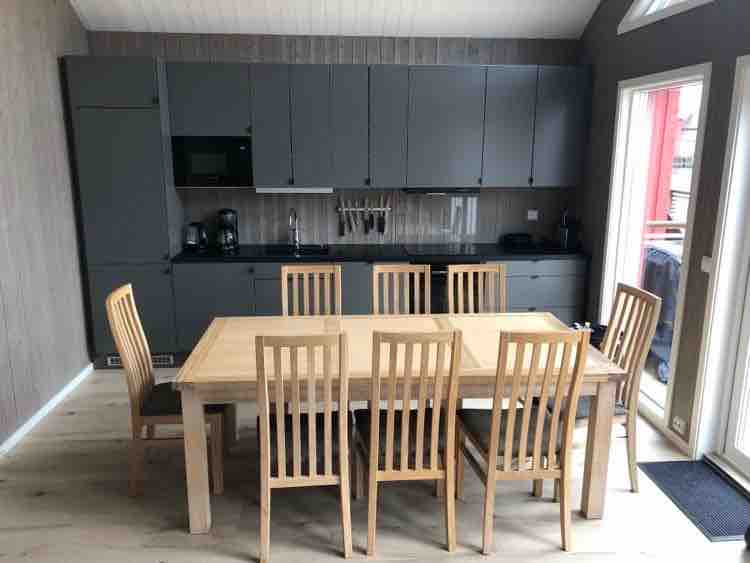 Érezd jól magad Lofotenben egy halászkunyhóban, ahol minden megtalálható, amire szükséged lehet. A víkendház új, modern, és közvetlenül az óceán és a hegyek mellett fekszik. A kabin fel van szerelve mindennel, amire szüksége van, egy nagy, teljesen felszerelt konyha, négy hálószoba, egy nappali, gyönyörű kilátással, 1,5 fürdőszoba zuhanyzóval és mosógéppel, és egy étkező szoba az egész család számára. Szép kandalló a második emeleti nappaliban.