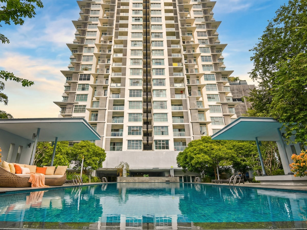 Welcome to '4 Star Five Senses Experience Suites' in KL ECO CITY, Bangsar, Kuala Lumpur—where luxury and nature come together. ✨ Direct link to Mid Valley & The Gardens Mall ✨ Short walk to LRT & KTM train stations ✨ Close to Bangsar Village & Bangsar South ✨ Surrounded by local food and nightlife Relax with Netflix, an infinity sky swimming pool, gym, free WiFi, and a family house with a sky garden. Experience the ultimate in comfort and convenience!