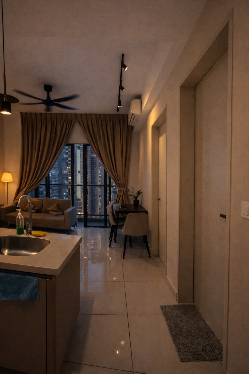 This is a Studio unit located at M city Jalan Ampang. Suitable for couple and small family. Most welcome Digital Nomad for Long stay. Room Offer: ✔one double bed ✔ Fully-Functioning Air-Condition ✔ Smart TV with Netflix ✔ Sofa ✔ Coffee Table ✔ Dining area AMENITIES -Hair Dryer -iron and board -kettle -refrigerator -Microwave -Washing Machine -Shampoo and Shower Gel -Shower Water heater -2 Shower towel -Toiletries -Wi-Fi (High-Speed Fibre Internet 300 Mbps)