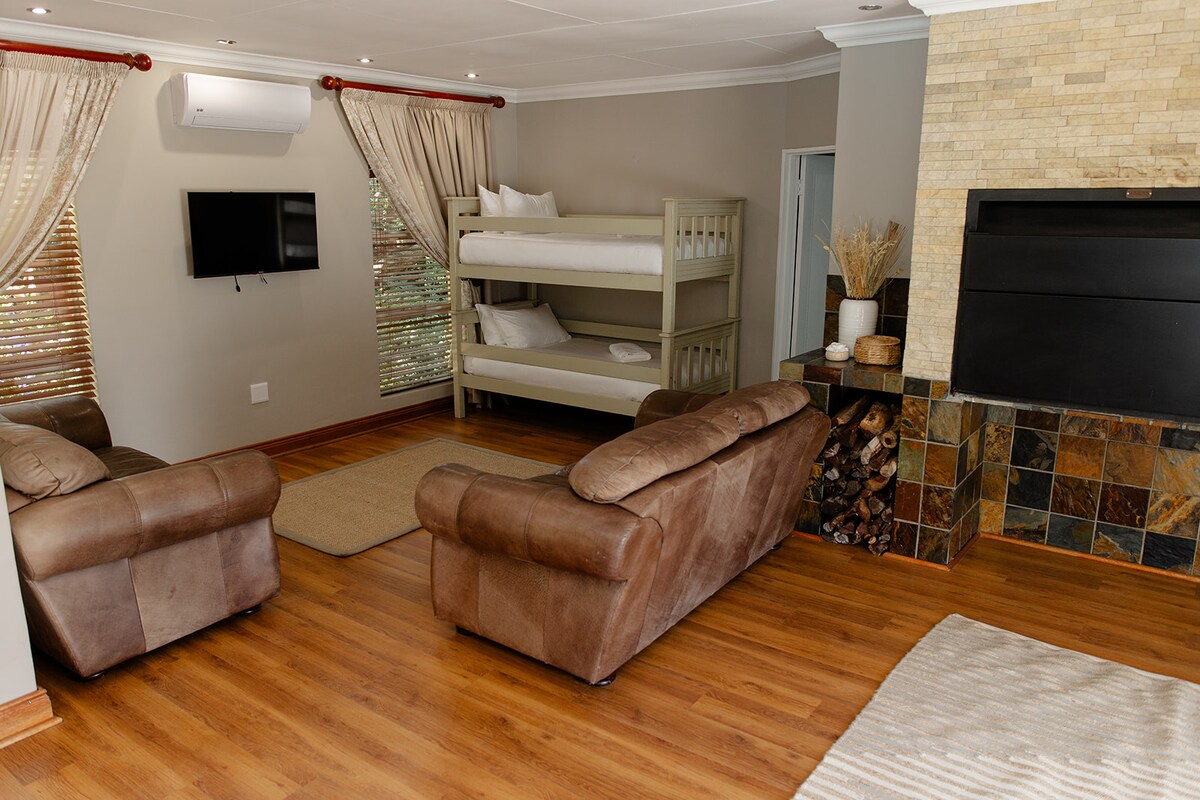 Központi elhelyezkedésű, privát, 1 hálószobás egység saját fürdőszobával, teljes konyhával, társalgóval, kijelölt munkaterülettel és biztonságos parkolással egy távirányítású kapu mögött. A hálószobában egy franciaágy található fehér egyiptomi pamutból készült ágyneművel, kacsatollas paplannal és egy elektromos bankkal. 81 centis síkképernyős tévék a tágas hálószobában és a privát társalgóban is, teljes DSTV-csomaggal. A vendégek ingyenesen használhatják a Wi-Fi-t is. Az egységhez egy privát „lépcsőház” területen keresztül lehet hozzáférni.
