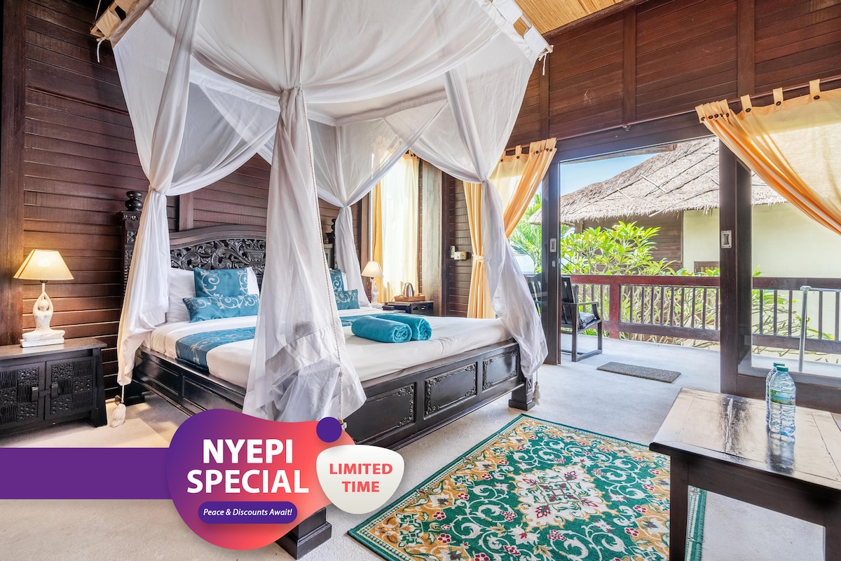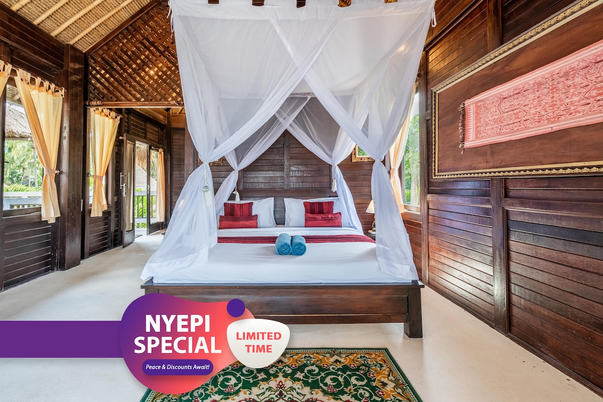 Az egyik legkeresettebb szobánk, ez az álomszerű, egy hálószobás szoba king méretű ággyal, félig szabadtéri fürdőszobával, saját erkéllyel és szabadtéri élettérrel rendelkezik. A medencével szemben található üdülőhelyről kilátás nyílik a medencére, és bepillantást nyerhetsz az óceánba. A Nusa Lembongan legbékésebb oldalán található - mindössze 3 perc sétára két strandtól: a Coconut és a Tamarind strandtól. Napi reggeli a helyszíni növényi alapú The Playful Table étteremben.