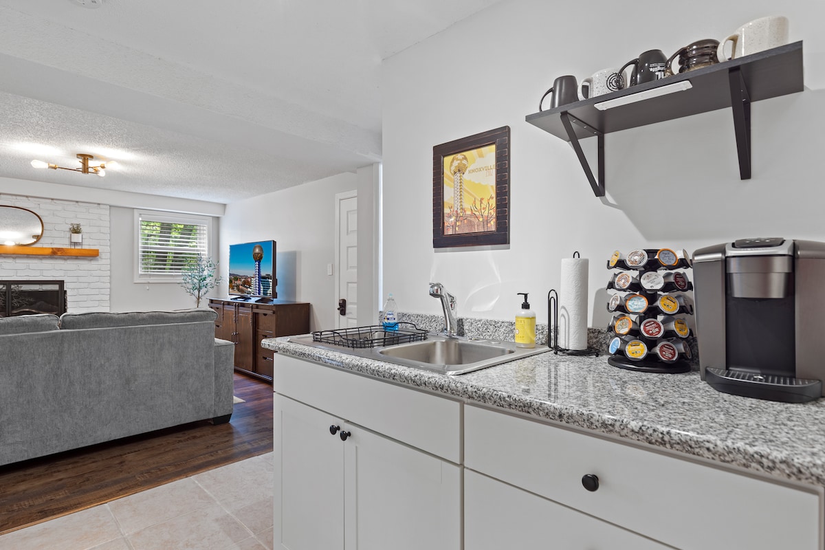 Ez egy teljesen felújított, két hálószobás, két fürdőszobás, alsó szinten található lakás West Knoxville-ben, ahonnan kilátás nyílik a hegyekre minden szobából! 3 percre vagy (I-40/ễ75), 5 percre a West Town Malltól, és 10 percre Knoxville belvárosától vagy Neyland stadiontól. Nézz tévét egy nagy képernyőn (nappali és mindkét hálószoba), főzz ételt (kert a helyszínen), vagy élvezd a hegyekre nyíló kilátást egy verandáról a privát teraszon. További információért kattints ide: https://youtu.be/vS26qPSr8KY