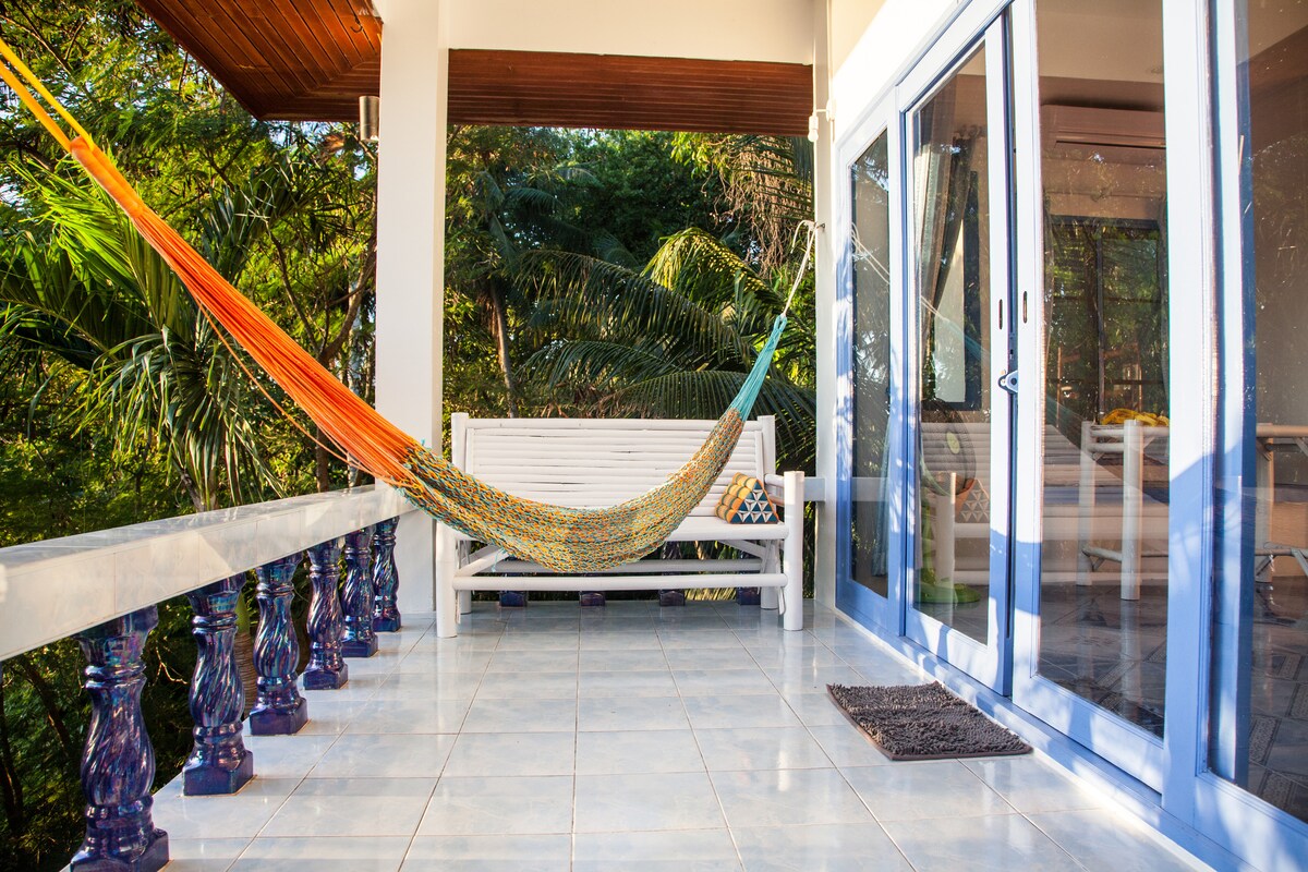 Menekülj ebbe a kézműves faházba, amely a dzsungel lombkoronájában, panorámás kilátással a hegyekre található. Tökéletes pároknak vagy távolról dolgozóknak, akik a természetbe szeretnének elmerülni anélkül, hogy feladnák a kényelmet. Lógj a saját függőágyadban, és nézd a napfelkeltét a dombok felett, vagy dolgozz a külön íróasztalnál, a fák tetejei között. Meleg tíkfa belső tér, teljes konyha, modern fürdőszoba kézműves kő mosdóval. Békés helyen, távol a tömegtől, mégis 10 percre a strandoktól. Önálló bejutás, légkondicionáló, gyors Wi-Fi.