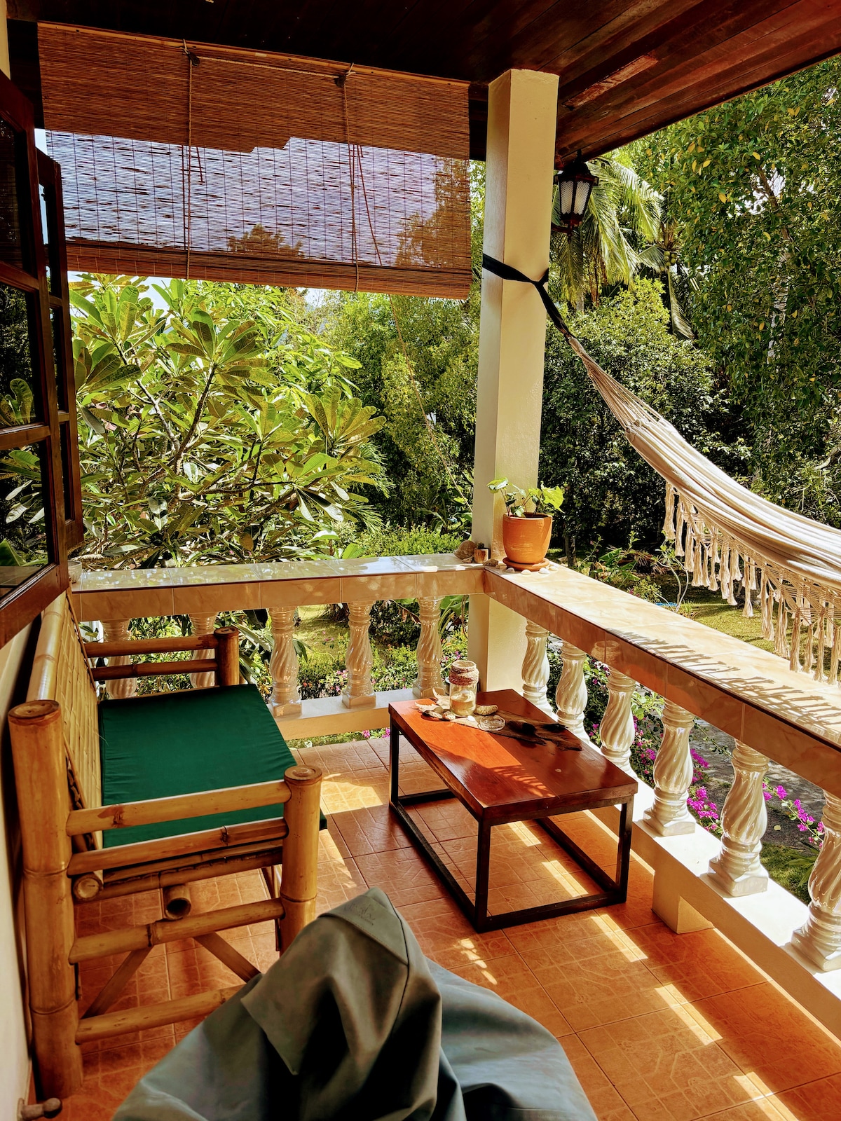 45 m² -es kanapéval, meleg vízzel, hangulatos erkéllyel, légkondicionálóval és Wi-Fi-vel 🏡. A❤ Koh Phangan, mindössze 2 perc autóútra a strandtól, 5 percre a központtól. ⭐Teljesen felszerelt és felszerelt konyha⭐ Nagyon biztonságos terület, ahol bármikor nyitva hagyhatja az ajtót. "Kitűnő hely!!! Van minden, amire szüksége van (beleértve egy felszerelt konyha alapfelszereltséggel). Igazán tiszta, jól megtervezett hely. AC, forró zuhany, függőágy! Összességében imádtam itt lenni, és reméltem, hogy visszatérhetek. Ó, és foglalj le egy Brillo masszázst...fantasztikus! "