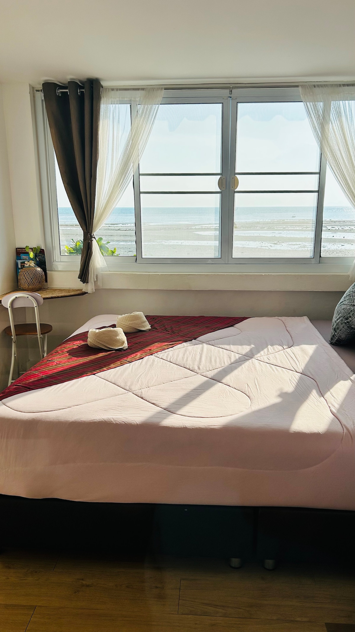 Ez a szoba az ingatlanunk végébe néz, és erkélye van. A hely körülbelül 6x5 millió = 30 m2. 6 lábas king méretű ágy kényelmes rugós matraccal. Légkondicionáló, kis hűtőszekrény. Műholdas csatornákhoz csatlakoztatott síkképernyős TV. A wifi csatlakoztatva van 500/100 mbit szál kapcsolat AIS internet szolgáltató, és gyors nemzetközi sebességgel 24 óra.