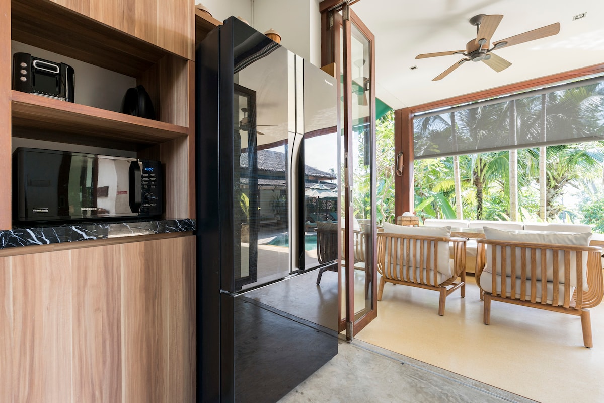 A strand közelében található öko-luxus menedékhelyünk autentikus thai bájjal rendelkező trópusi sziget harmonikus keverékére invitál. Élvezd a csodálatos kilátást a tengerre, és pihenj, miközben a buja trópusi kert és a dzsungellel borított dombok veszik körül. Frissülj fel a végtelenített medencében, lazíts wellnesskezelésekkel a privát szabadtéri masszázsterületünkön, hallgasd kedvenc zenéidet Bluetooth-rendszereken, vagy lazíts egy filmmel a Netflixen. Élményközponti stílusú szolgáltatás napi takarítással és reggelivel.