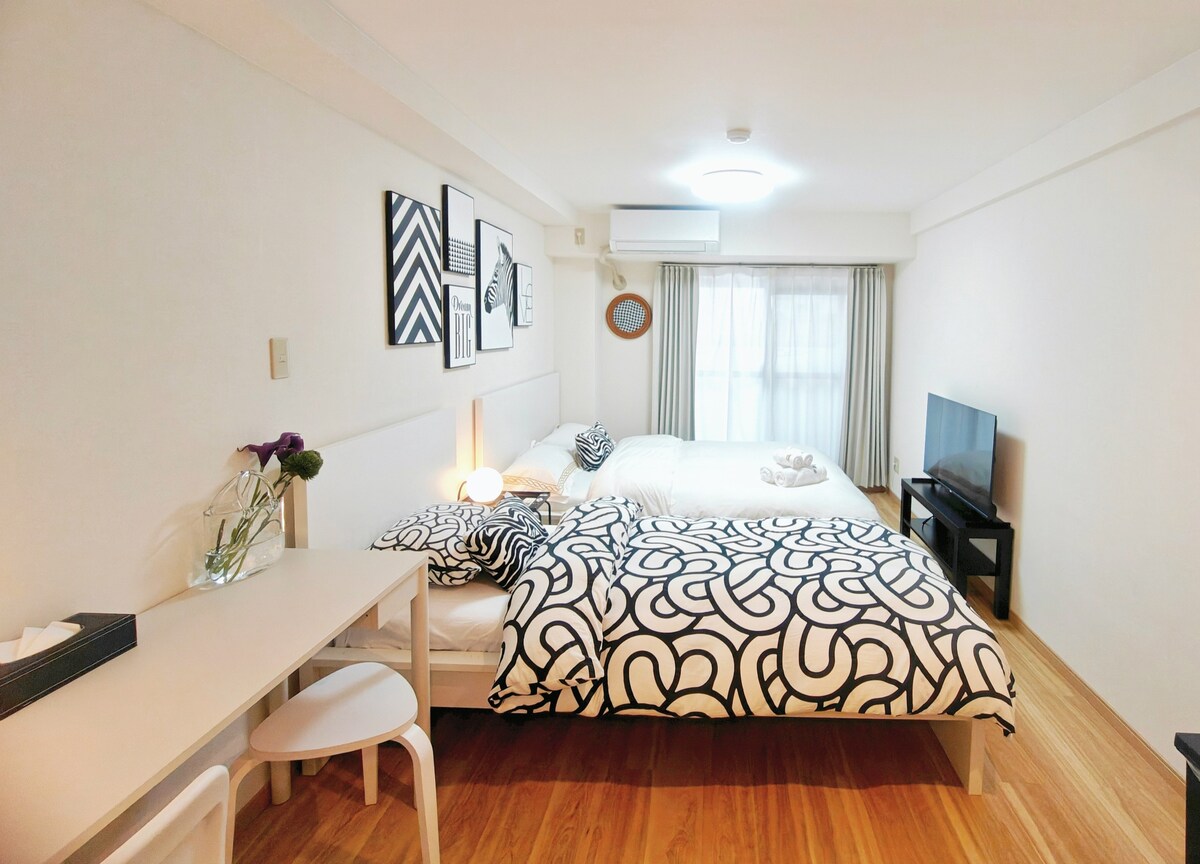 Új dekoráció/JR, metró Tsuruhashi állomás 4 perc sétára Dotonbori, Namba, Umeda, Kuromon piac, USJ, jó hozzáférés