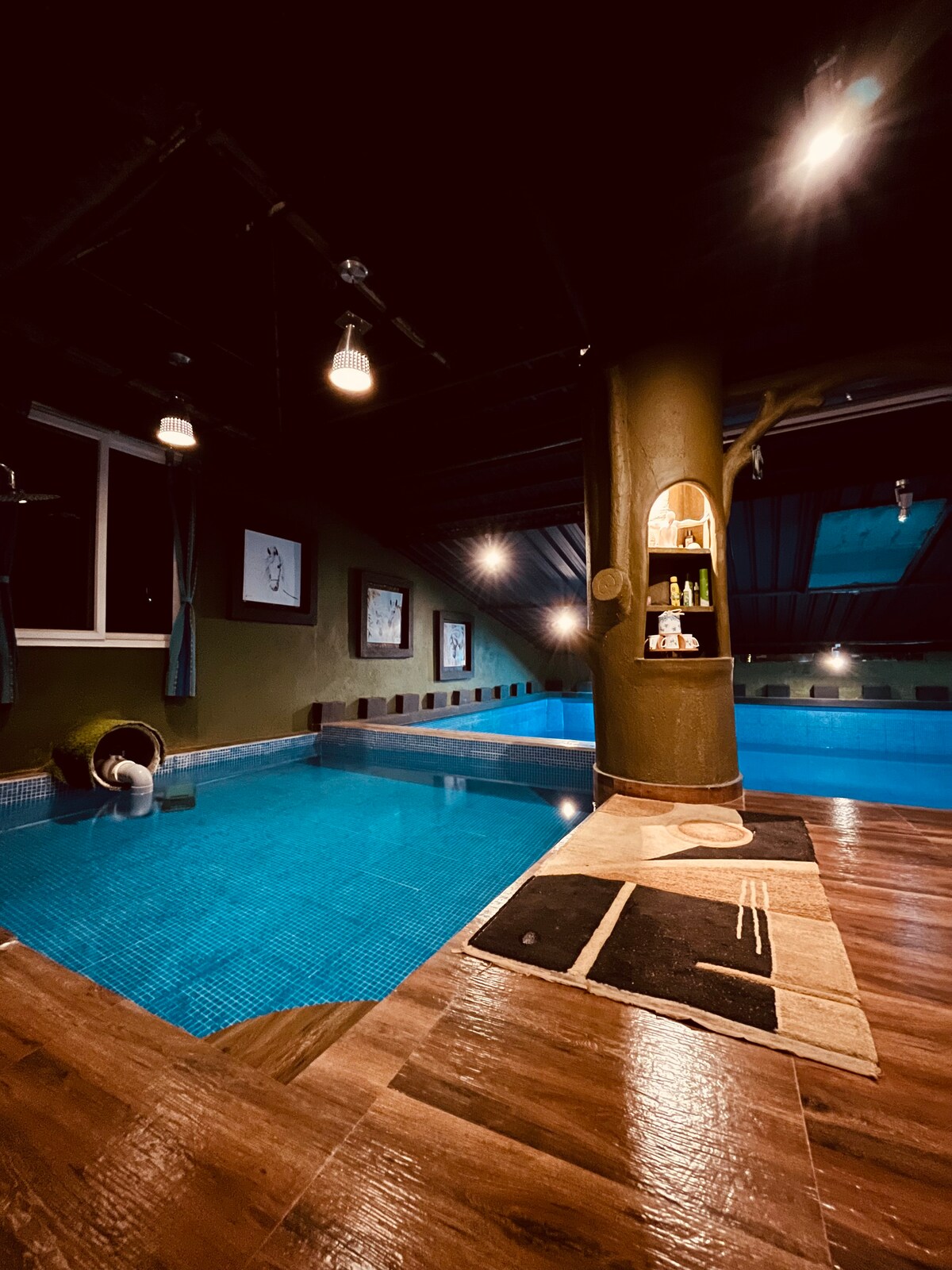 Tint n unique Orane Castle Cabin At the tail end of Brise Stables, 1.5 km from the horse nesting area, this serene retreat features 1-XL king-size bed, private plunge pool, washroom, open-air sit-out, amenities like a music player, guitar, locker, mini fridge, kettle, and hair dryer. Enjoy an open living area with views of an arena under an Arjuna tree, outdoor sports, and a campfire spot. Includes a complimentary horseback estate tour on arrival and breakfast. Perfect for 1 couple and 1 child.