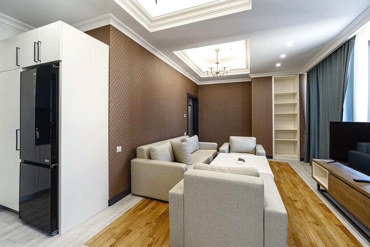 A truly unique space with high ceilings and cozy atmosphere. The flat includes a full kitchen, bathroom and two sofa beds. On the lower level you have an indoor indoor pool, gym, and sauna. The studio flat and the entire building are brand new construction. The building has 24/7 security and includes a lobby at the entrance level. The city center is a short walk down the famous Cascade Steps or a 5 minute taxi ride. I would love to host your stay in Yerevan.