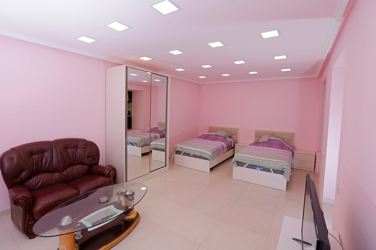 Наша уютная 2-комнатная квартира, расположена в здании,возвышающимся над тихим и уютным кварталом. Само здание является достопримечательностью Еревана. Из окон открываются неповторимые виды на столицу, парк Победы. Расположен в экологически чистом районе города. Это место будет идеальным для вашего отдыха или деловой поездки. Насладитесь стильным отдыхом . Рядом с домом множество кафе, ресторанов, магазинов и достопримечательностей В квартире есть все удобства для комфортного отдыха.