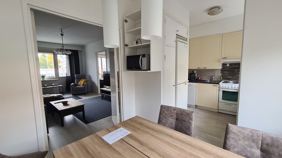 Roomy, light 60m2 flat next to Sapokka water park In 2016 renovated flat with peaceful location, only 10 min walking distance to swimming hall/sauna and city centre. Balcony, free parking. 5 minutes walk from bus stop, 15 minutes from railway station.