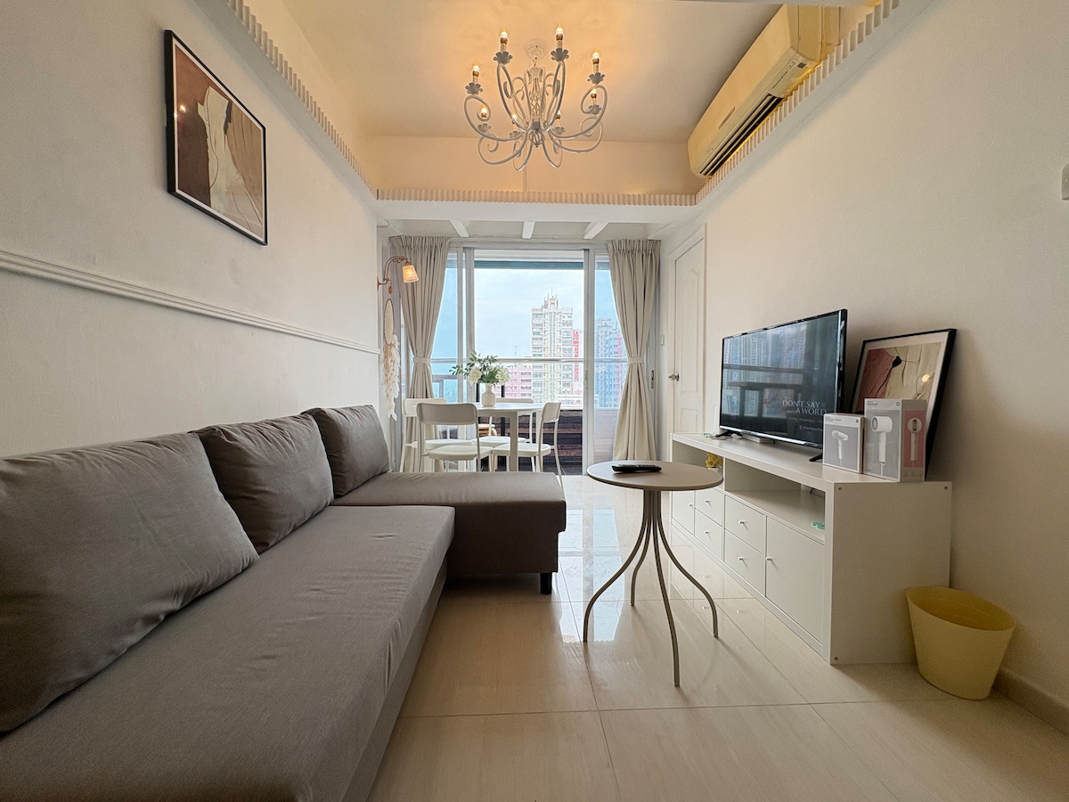 Large, modern, stylish, newly renovated deluxe 2 bedroom apartment (900 sqft) conveniently located just 5 mins walk from MTR station & 15 mins from Wanchai & Central. Situated in a popular neighbourhood with excellent transport links, and easy access to supermarkets, restaurants & shops - all within 5 mins walk. 2 bedrooms with 1 Queen Bed, 2 elevated single beds + 1 airbed. Fully furnished with hi-speed Wi-Fi, AC, well equipped western kitchen & large swimming pool and sauna all year round.