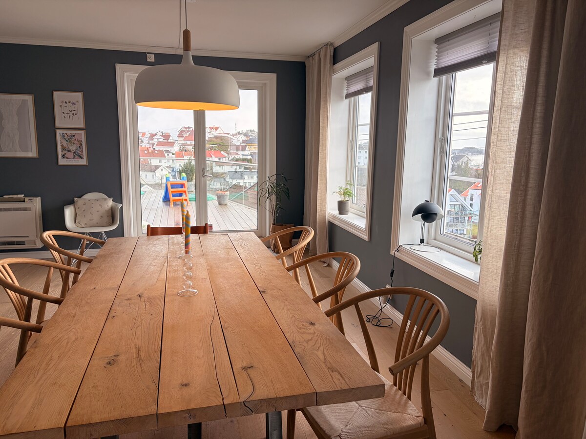 Ny leilighet med utsikt, nær badeplass og sentrum