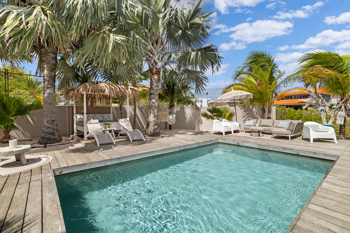 Discover our brand new Balinese stay in downtown Bonaire, just 250m from the boulevard & sea. Car rental available! This peaceful oasis features it's own driveway, a rinse station for dive/surf gear and a refreshing outdoor shower. Unwind on your private veranda with small plunge pool, a Weber BBQ, lounge & hammock. Despite the central location, enjoy tranquility in this stylish space surrouded by tropical birds and iguanas. The elegant interior blends tropical charm with modern comfort.