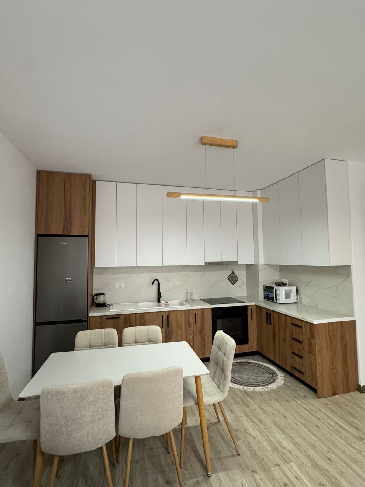 Élvezd a békés és kényelmes tartózkodást ebben a modern lakásban, amely csak egy rövid sétára található Kruja történelmi központjától. A minimalista stílusban kialakított tér világos, tiszta és nyugodt – ideális a pihenéshez vagy a távmunkához. A központi helyen található lakás mindössze néhány percre található Kruja kastélyától, a hagyományos bazártól, a múzeumoktól és a bájos kávézóktól. Akár a kultúra, akár a kikapcsolódás, akár mindkettő miatt látogatsz el ide, ez a stílusos és békés lakás mindent kínál, amire szükséged van egy emlékezetes foglaláshoz.