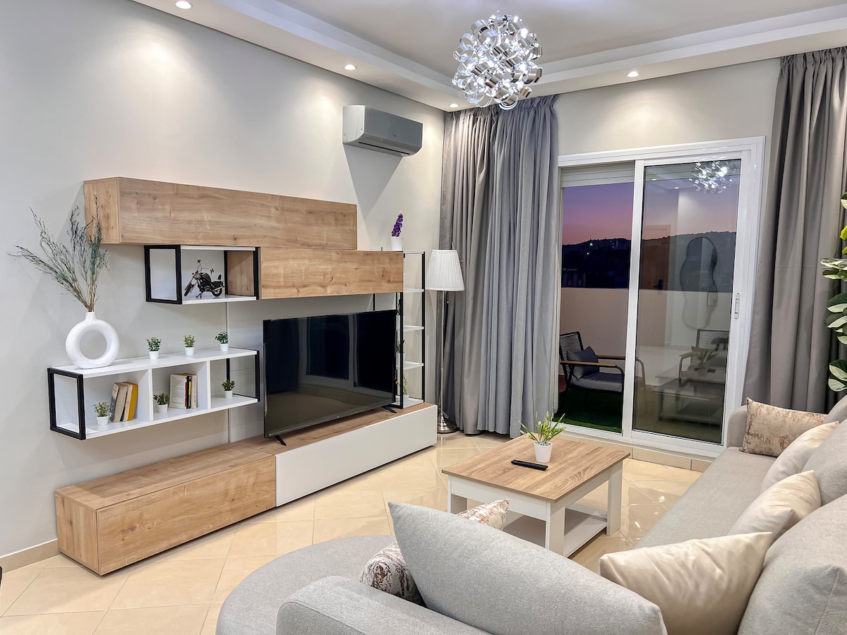 Üdvözlünk vadonatúj, két hálószobás lakásunkban, amely Tangiers egyik elsőrangú területén található. Ez a luxus ingatlan a város egyik legkeresettebb környékén található, 24 órás ügyintézővel, és mindössze 10 perc sétára van a vasútállomástól, a City Centre Mall bevásárlóközponttól, az Ibn Battuta Mall bevásárlóközponttól és a strandoktól. Kényelmet és luxust is kínál a küszöbödön. Privát parkolóhely áll rendelkezésre. A lakás a következőkkel büszkélkedhet: optikai Wi-Fi, sofőr lehetőség és marokkói reggeli, amelyet a házvezetőnk készít (felár ellenében)