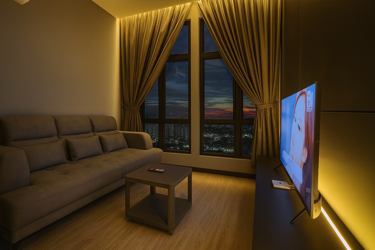 Privát luxuslakosztály | Sétatávolságra a KSL Malltól • Sétatávolságra a KSL Mall bevásárlóközponttól • MUJI-ihlette minimalista dizájn • Privát pezsgőfürdő a pihenéshez • Magával ragadó mozi térhatású hangzással • King méretű ágy 30 cm vastag prémium matraccal • Plüss, csúcskategóriás kanapé Kényelemre, magánéletre és csendes luxusra tervezték. Ideális pároknak, különleges alkalmakra, vagy azoknak a vendégeknek, akik kifinomult és zavartalan szállást keresnek Johor Bahru szívében.