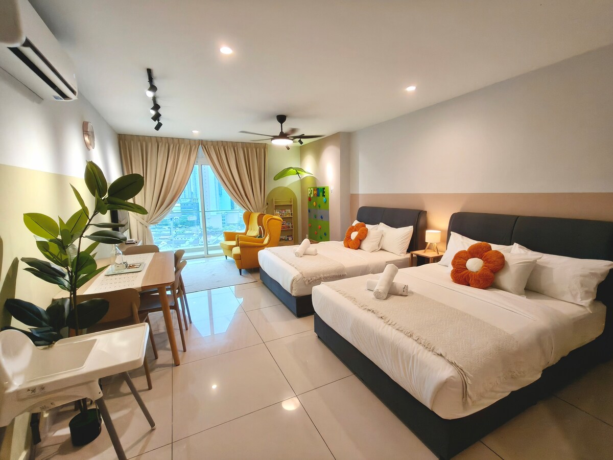 Your family will be close to everything when you stay at this centrally-located place. ❍ Stunning City Night View ❍ Walking distance to KSL City Mall (same building) ❍ Located downtown Johor Bahru ❍ Located right above KSL shopping mall . Cinema , eateries and salons, massage etc under one roof. ❍ Surrounded by various bars, cafe, restaurants ❍ Unlimited wifi ❍ Enjoy TV programs, Netflix and Youtube ❍ Comfy bed arrangement ❍ Kitchenware, cooking utensils provided ❍ Flexible self-check-in