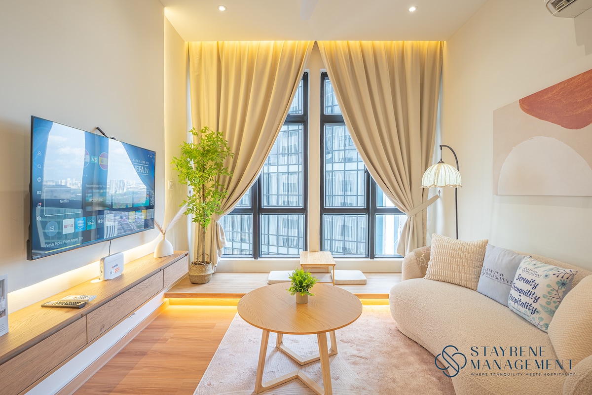 Privát luxuslakosztály | Sétatávolságra a KSL Malltól • Sétatávolságra a KSL Mall bevásárlóközponttól • MUJI-ihlette minimalista dizájn • Privát pezsgőfürdő a pihenéshez • Magával ragadó mozi térhatású hangzással • King méretű ágy 30 cm vastag prémium matraccal • Plüss, csúcskategóriás kanapé Kényelemre, magánéletre és csendes luxusra tervezték. Ideális pároknak, különleges alkalmakra, vagy azoknak a vendégeknek, akik kifinomult és zavartalan szállást keresnek Johor Bahru szívében.
