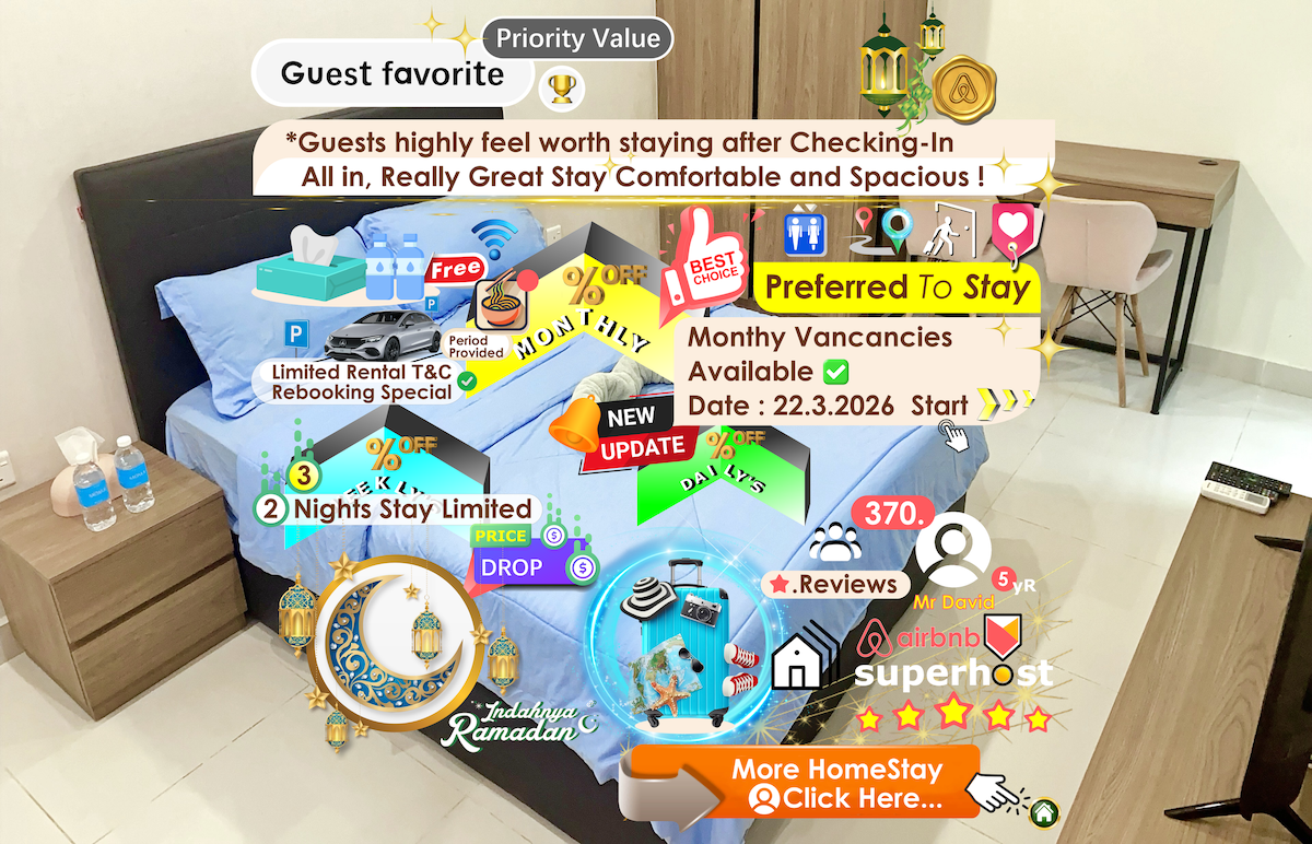 My homestay is located at very strategic location (Boulevard shopping mall), which is nearby airport, bus terminal, shopping malls & major tourist attractions. Therefore, my homestay is suitable for business travelers, couples, and travel with friends & families Guests are able to access swimming pool, gym, sauna, steam bath, shopping & eating places. Please enjoy your trip & stay in my homestay, and at the same time, explore Kuching’s must-go attractions; Sarawak cultural village, etc.
