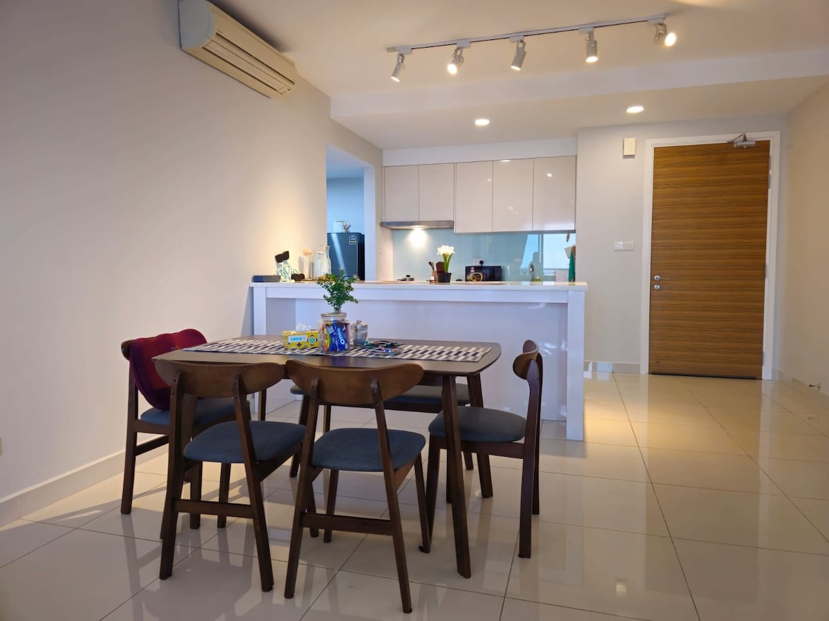 *ÚJ* Küldd el nekem a „New package” szót, és 8% pénzvisszafizetést kapsz. Menekülj el a mindennapokból a stílusos, két hálószobás lakásunkba Johor Bahru 33. emeletén. Ez a modern, minimalista szállás lenyűgöző kilátást nyújt a városra, és kényelmesen elfér benne 6–7 fő. Tökéletes családok vagy üzleti utazók számára, és rendelkezik Netflix-szel ellátott HD-projektorral, nagy sebességű 5G Wi-Fi-vel és jól felszerelt konyhával. Élvezd az egyedülálló városi kiruccanást üdülőhelyi kényelmekkel.