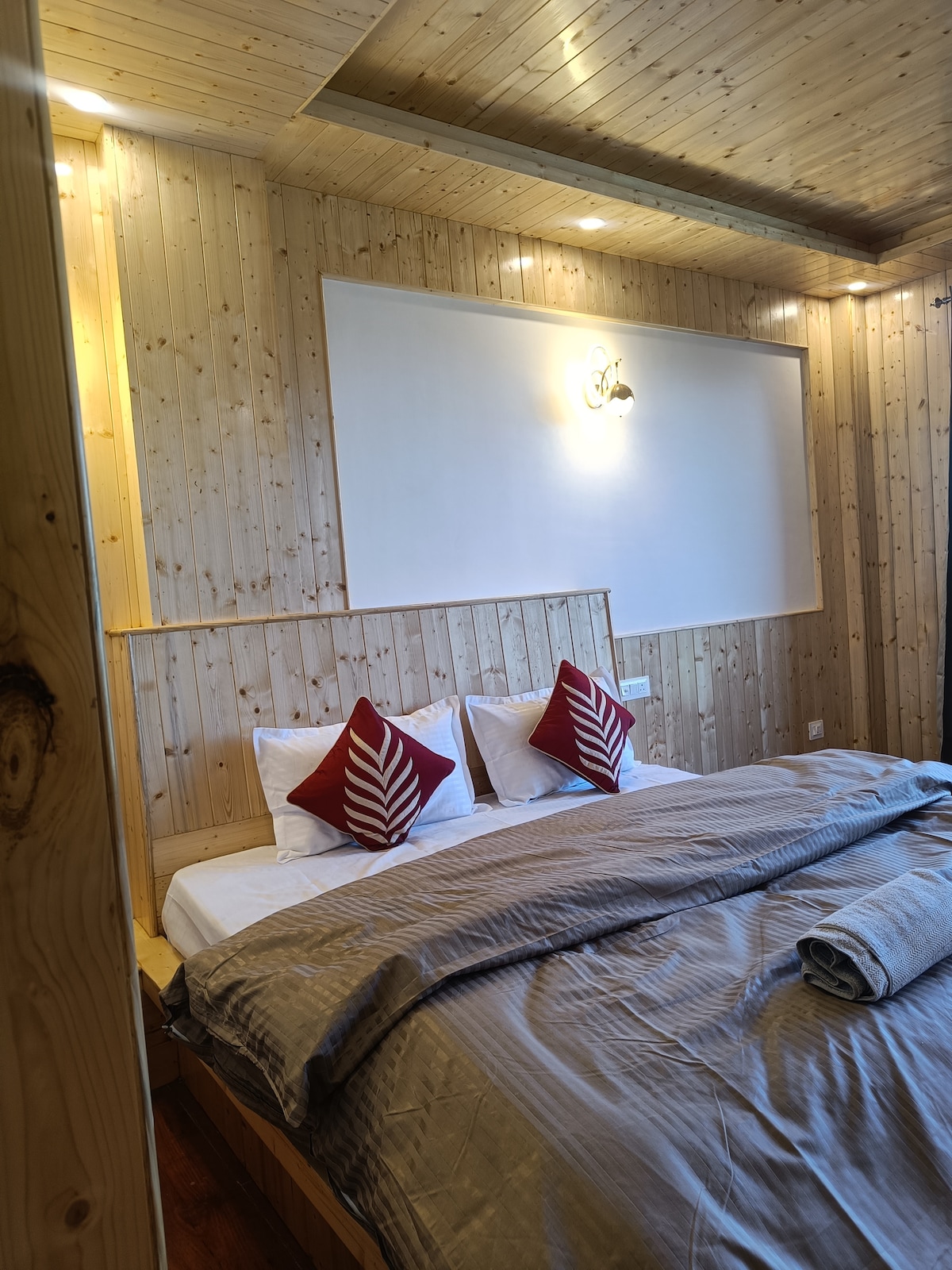 Deluxe szobáink meleg/hideg légkondicionálóval, wifivel, 43 hüvelykes okostévével és ott csatornákkal, elektromos vízforralóval, kétszemélyes ággyal és 10 hüvelykes matraccal és elektromos ágyfűtéssel, folyóra néző erkéllyel és fenséges kilátással rendelkeznek a hegyekre. A fürdőszobában minden szükséges kényelmi szolgáltatás megtalálható, például friss törölközők, sampon, tusfürdő, hidratáló, fogászati készletek, 24 órás meleg és hideg víz. A hálószoba mérete 11x12 láb. A fürdőszoba 7x5 láb hosszú. A saját erkély mérete 8x4 láb.