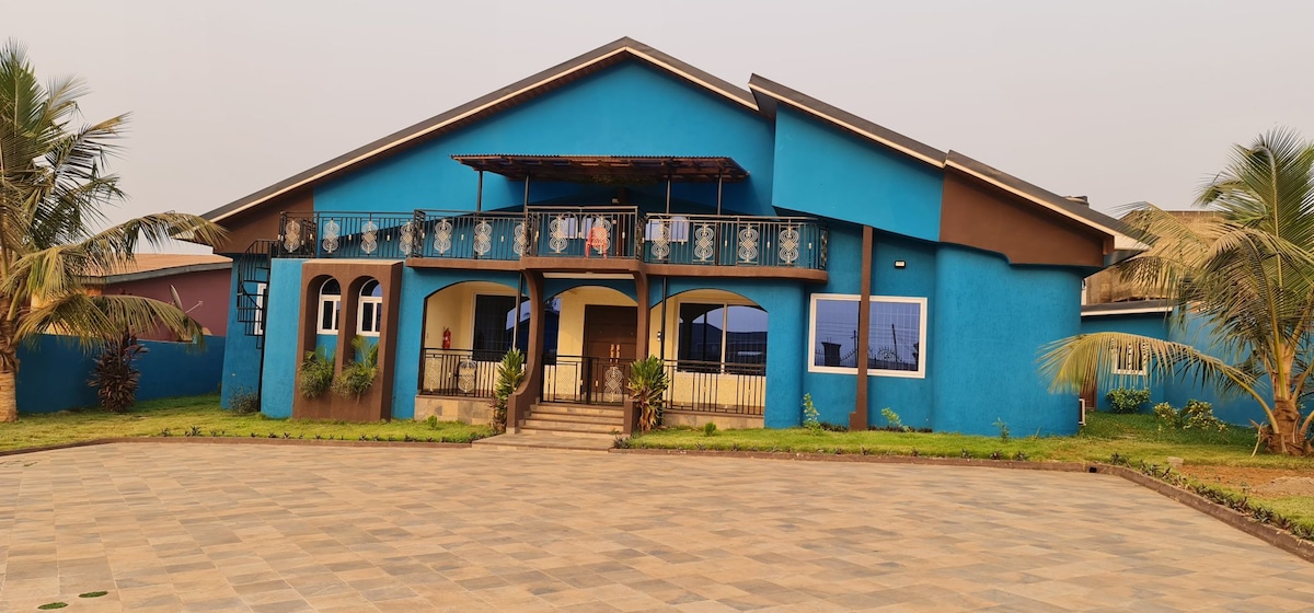 Menő légkör a város jó helyén, ingyenes parkolással és ingyenes Wi-Fi-vel. Körülbelül 15 perc autóútra a repülőtértől és kevesebb mint 10 percre Kumasi központi üzleti negyedétől. Rendelkezésre áll a ház teakonyhájában a szobákban, légkondicionáló stb.