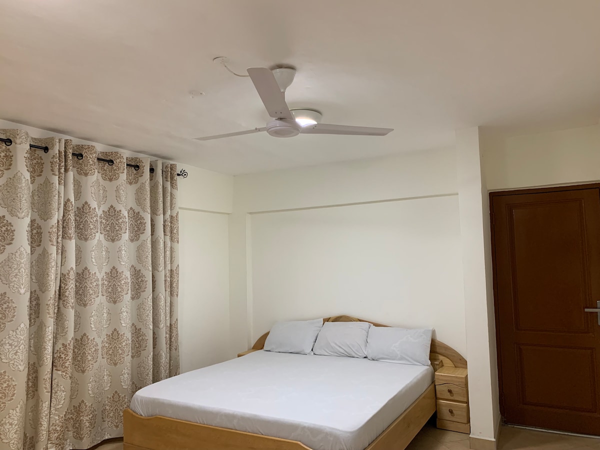 Tágas,tiszta és kényelmes 2 hálószobás lakásunk a második emeleten található, természetes szellőzéssel biztosítva Kumasi szívében, alapvetően 5 perces autóútra Kumasi összes nagyobb helyétől, beleértve egy gyönyörű golfpályát is. Minden szobát gondosan megterveztek a kényelem érdekében, és az ágyakat ropogós pamutlepedővel helyezték el. Ez a lakás tökéletes pároknak, családoknak és barátoknak. A takarítás, a mosási szolgáltatások és a barkácsolás alacsony felár ellenében is rendelkezésre áll.