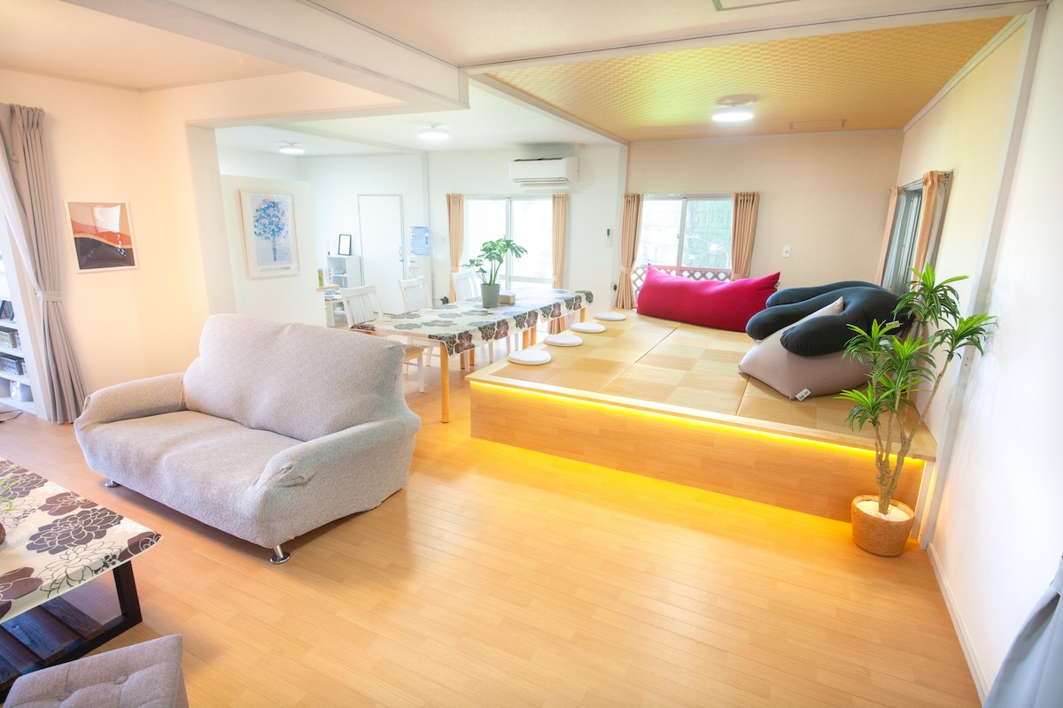 Pension Makanarea Resort Okinawa 4K 100hüvelykes projektor, akár 1 Gbps sebességű wifi, mosógép/szárítógép, íróasztal, Zoom konferencia, Netflix, Disney + korlátlan filmek, grillezési lehetőség Befejezve 2019 augusztusában Úgy tervezték, hogy kényelmes otthon legyen a gyermekes családok, a szülők és gyermekek három generációjának nagycsaládjai, a lánybúcsúk és az érettségi kirándulások számára.Rengeteg kényelmi szolgáltatással is rendelkezik a gyermekek számára, és kényelmessé teszi a családi utazásokat a családok számára. Luxus társasház körülbelül 150 négyzetméteres tengerparti stílusban, a szálloda nem rendelkezik, a báj a méret, a kényelem és a szórakozás. 4 hálószoba, 6 franciaágy, 1 queen méretű kanapéágy, 2 matrac, konyha főzőedényekkel, 2 mosdó és fürdőszoba, 3 WC.Vannak olyan létesítmények, amelyek lehetővé teszik, hogy 16 ember tartózkodjon a magánéletben. Okinawa nyugati partján, az 58-as út mellett található.Népszerű American Village 8 perc, Araha Beach 5 perc, Naha repülőtér 25 perc, Kisbolt 2 perc gyalog, Nagy szupermarket - 4 perc, 11 perc Rycom, 10 perc Parco, nagyszerű helyen! Okinava prefektúra központi részén található, jó hozzáférést biztosít északról és délről, és nagyon kényelmes a hosszú távú tartózkodáshoz Okinawán. Alapos koronavírus ellenintézkedések fotokatatalizátorokkal