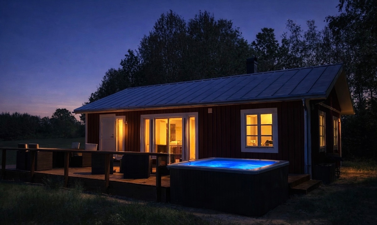 Az új építésű 2021-es rönkház fantasztikus, exkluzív élet, privát elhelyezkedés, csodálatos kilátással a tóra, az erdőre és a mezőkre. Rengeteg program . Ez a hely a kalandvágyóknak vagy egy pihentető kiruccanásnak készült. Élvezd a mellékelt hideg ágyneműt és a frissen mosott törülközőket. Wifi. Élvezd a belső kandallót, a tágas nappalit a házon belül, vagy pihenj a nagyszerű teraszon, és fürödj meg a luxuskivitelű szabadtéri GYÓGYFÜRDŐBEN. Tökéletes túrázáshoz, kerékpározáshoz, lovagláshoz, horgászathoz és golfozáshoz. Rosenhult dot se
