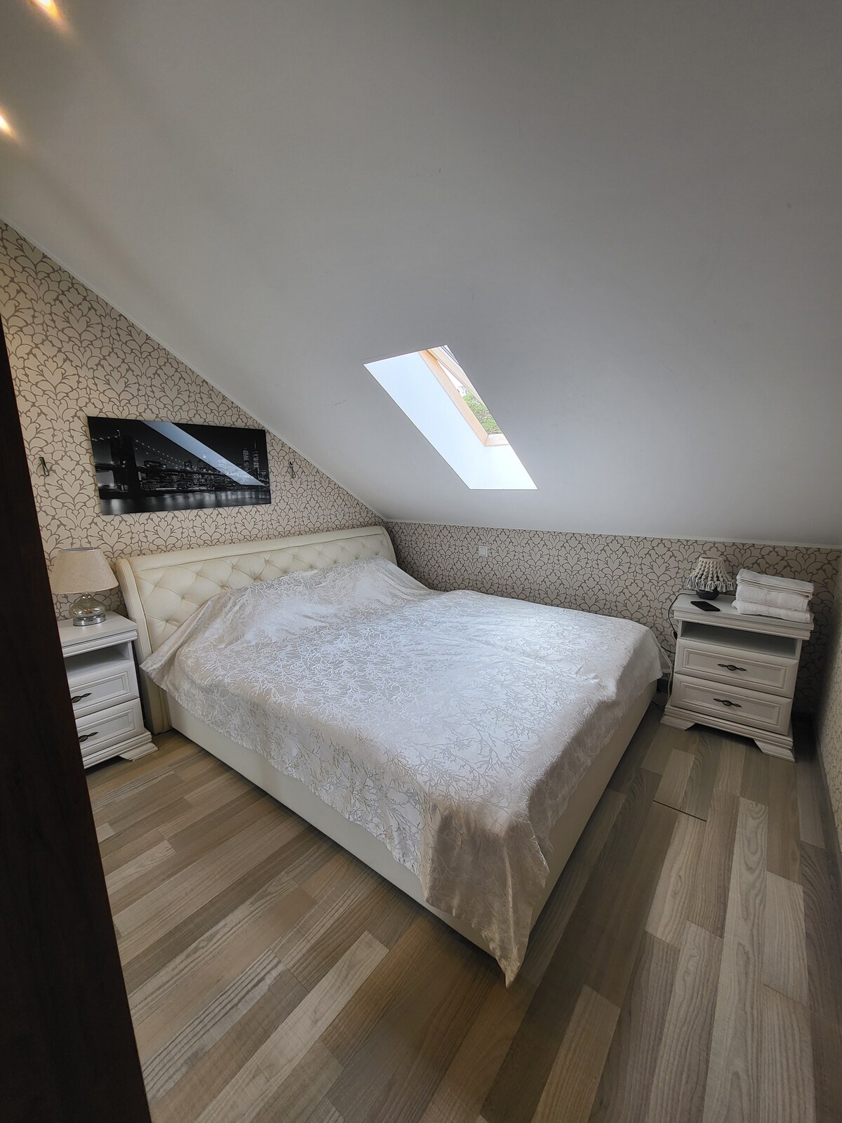A lakás tágas elrendezésű, és mindent tartalmaz, amire szükséged lehet - a konyhában a főzéshez és az étkészlethez szükséges technika, egy kapszulás kávéfőző + kávékapszulák, elektromos vízforraló, mikrohullámú sütő. Kanapéágy, amely kihajtható a nappaliban, egy 55hüvelykes tévé és internet. A hálószoba egy privát szoba gardróbbal és sötétítőfüggönyökkel. A lakás mosógéppel, ruhaszárítóval, hajszárítóval és porszívóval van felszerelve A lakás egy csendes alkörzetben található, sétatávolságra a bevásárlóközponttól, mozitól, élelmiszerboltoktól Ingyenes parkolás és kamerás megfigyelés a ház előtt Buszmegálló 1,5 km-re