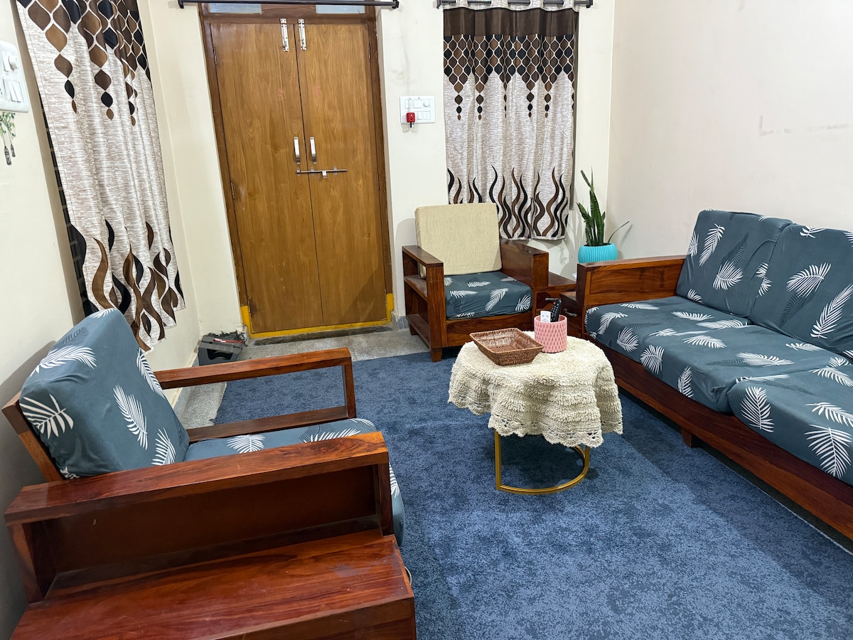 Welcome to your ideal home away from home. Our apartment is on the first floor of the villa without a lift, exclusively for the families only. Unmarried couples and Bachelors are restricted. Our apartment is spacious. A/C in both the bedrooms, with attached bathrooms. Featuring two spacious bedrooms, our retreat ensures a peaceful night's sleep . The master bedroom is with a king-size bed, while the second bedroom is with 2 Single beds, and one additional floor matters.