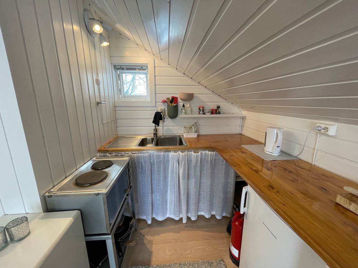 This tiny guesthouse has the most beautiful view directly from your kitchen and sleeping room window. Since there's no street lights around, it's the perfect place to watch the Aurora and enjoy a relaxing private getaway in the Arctic. We live next door with our 6-year old son and cat. We are at work from 8:00 are at home from about 4:30pm and on weekends. On-site services: EV charging 400kr/ Private transfer 500kr/Hot tub 1200kr or 100€ for 2 days/Sauna 500kr or 40EUR per use (cash only)