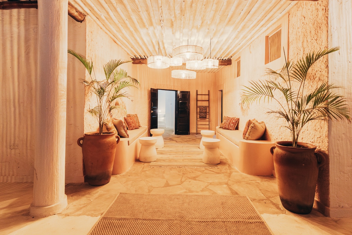 Üdvözlünk a Furaha House boldogságában, egy bájos, egy hálószobás villában, amelyet a tökéletes romantikus kiruccanáshoz terveztek. A „Furaha”, amely szuahéli nyelven „örömet” jelent, megragadja ennek a villának a lényegét - egy szentélyt, ahol a boldogság és a kikapcsolódás szelleme minden részletében életre kel. Itt a modern kényelem könnyedén elegyedik a szuahéli kultúra melegségével, és felejthetetlen kiruccanást kínál a tengerpart örömteli energiájával átitatva.