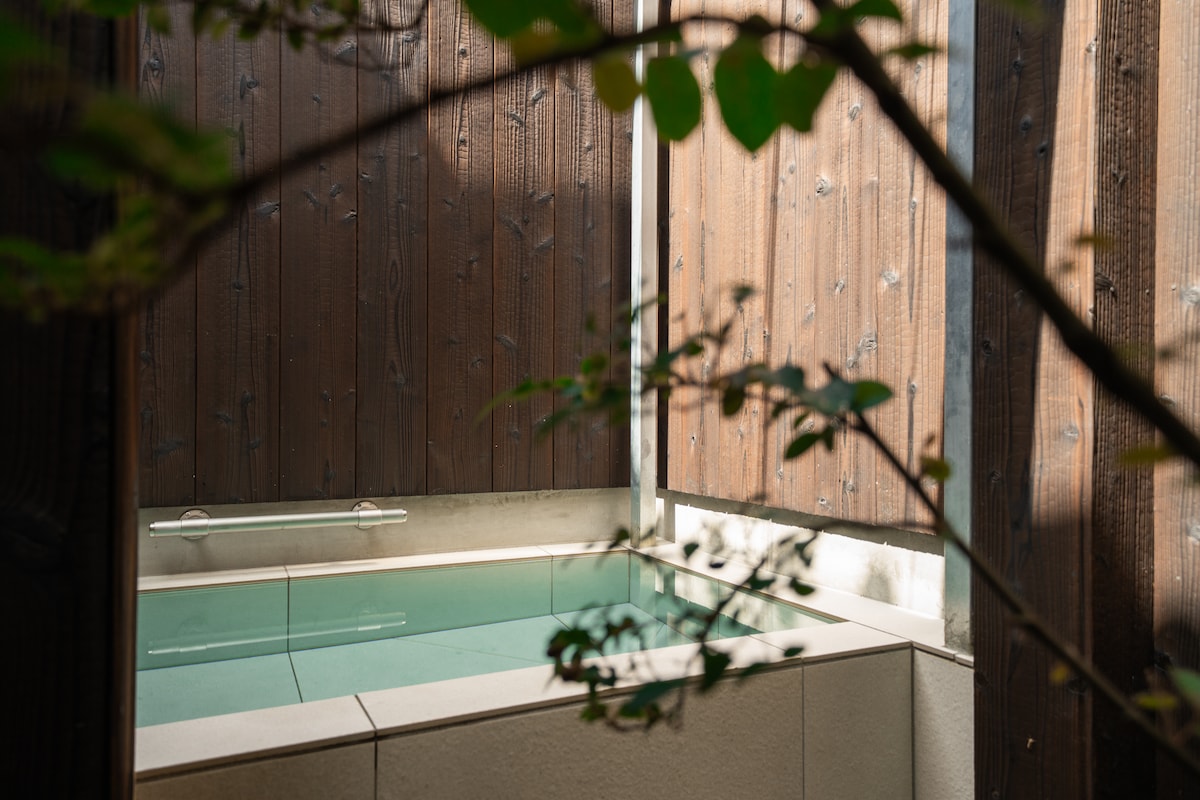 Művészház Kiotóban egy nagy ciprusfürdővel