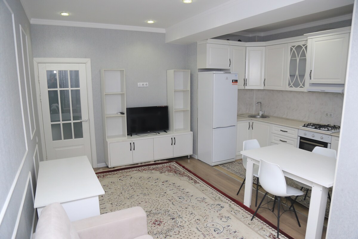 Élvezd, hogy egy stílusos lakásban szállhatsz meg. Teljesen új, világos, tágas lakás egy új lakóépületben, új felújítással. Hangulatos hálószoba nagy ággyal (180*200) ortopéd matraccal. Konyha-nappali minden szükséges a kényelmes tartózkodáshoz. Az ablakokból gyönyörű kilátás nyílik a városra és a gyönyörű hegyekre. Séta az egész terület mentén parkokkal, üzletekkel, bárokkal, éjszakai klubokkal, éttermekkel és kávézókkal. 10 perc séta az Ala-too központi térig.