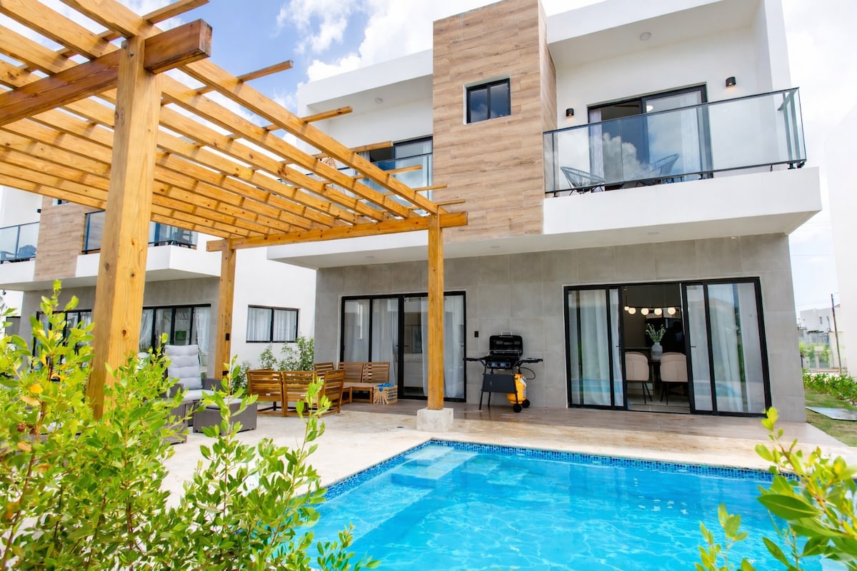 ✨ Modern penthouse Cap Canában saját jakuzzival és lifttel. 5 percre a repülőtértől, és közel a Juanillo Beach-hez és Punta Cana belvárosához. Ideális 5 fő számára, tágas terasszal, medencével, teljesen felszerelt konyhával, gyors Wi-Fi-vel és saját parkolóval. Csendes és biztonságos környék, a közelben van egy szupermarket, amely házhozszállítást is kínál. Élvezd a kényelmet, a magánszférát, valamint az éttermek és szolgáltatások könnyű elérhetőségét. Foglalj most egy egyedi Punta Cana-élményért! ✨