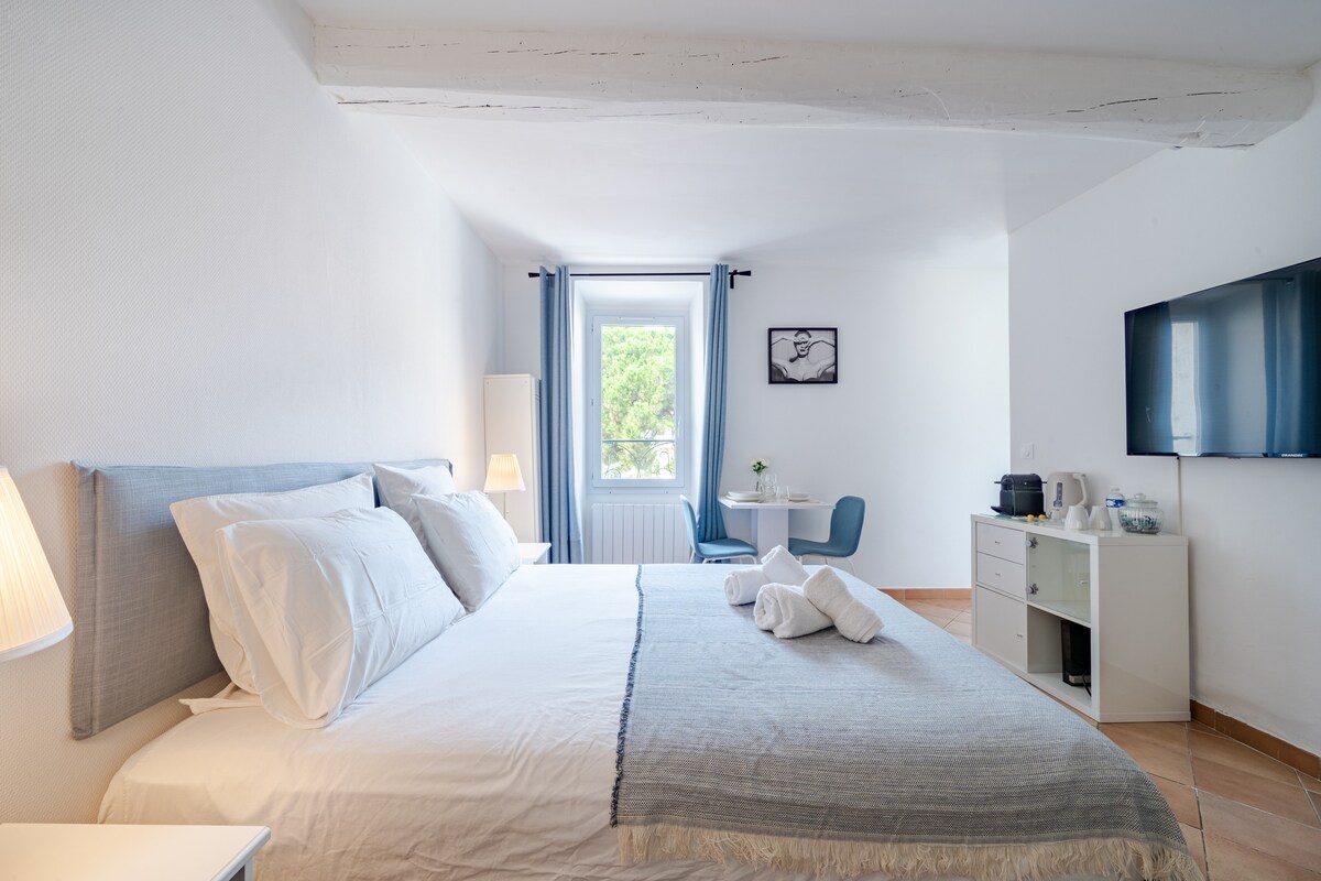 Luxus, világos és szellős stúdió nagy és privát panorámás TENGERRE NÉZŐ ERKÉLLYEL, kilátással a Cannes régi kikötőjére és a Palais-ra. Ingyenes és nagyon gyors WI-FI. Új A/C. 50" SMART TV A LEGJOBB ELHELYEZKEDÉS CANNES KÖZPONTJÁBAN: mindössze 5 PERC SÉTÁRA A PALAIS & La Croisette-től, 3 PERC SÉTÁRA A LEGKÖZELEBBI STRANDTÓL. Éttermek és bárok állnak a rendelkezésedre. Autóra nincs szükség: a buszmegállók és a vasútállomás 10 perc sétára vannak Újonnan felújított lakás beépített konyhával, mosógéppel TÖKÉLETES nyaralóknak és üzleti utazóknak