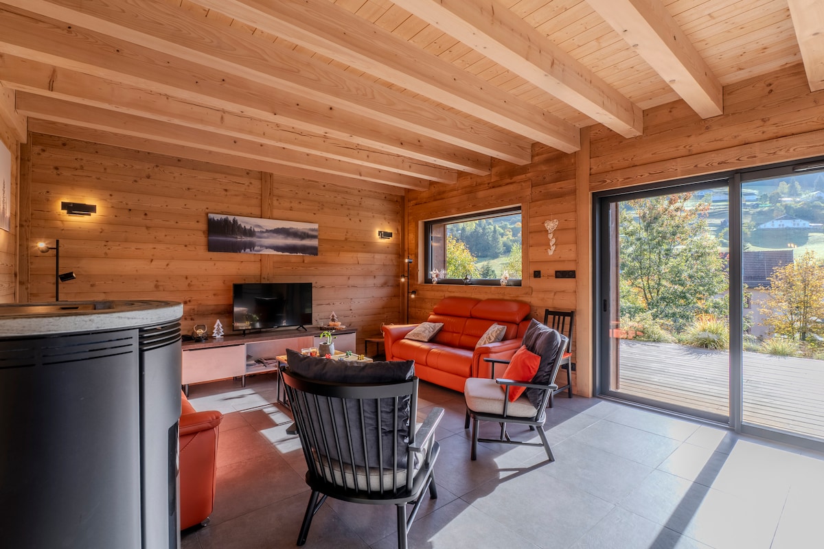 ÚJ 2025. DECEMBER! Hangulatos és modern faház – 6-8 fő – La Bresse Üdvözlünk hangulatos és modern faházunkban, amely 800 méteres magasságban, La Bresse szívében található. Családdal vagy barátokkal is nagyszerű szálláshely, mindössze 10 percre a sípályáktól és 5 percre a városközponttól. 32 m2-es nappali, felszerelt konyha, magasföldszint, 3 hálószoba, beleértve a fő hálószobát. Kényelmes ágynemű. Nagy, 40 m2-es terasz kilátással a Vogézekre és a jakuzzira. Mosógép/szárítógép.