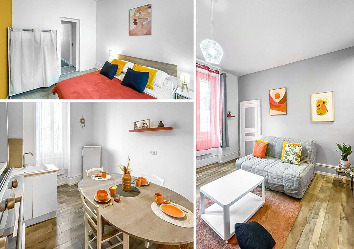 Elbűvölő, modern és otthonos szálláshely Montluçonban, ideális helyen, 100 méterre a vasútállomástól és 5 perc sétára a középkori és történelmi központtól. Ebben az otthonban két hálószoba, egy zuhanyzó, egy étkezőre nyíló nagy nappali és egy teljesen felszerelt konyha található. Élvezd a nagy teraszt kerti bútorokkal és pavilonnal, valamint a privát kertet. Mosókonyha is a rendelkezésedre áll. Nagyszerű a kényelmes és élvezetes tartózkodáshoz!
