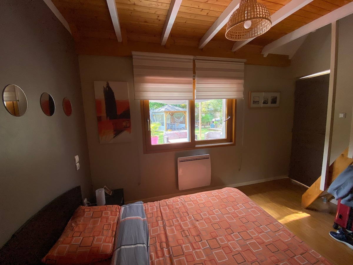 Független stúdió csendes, zöld környezetben, Nantes kapujában. Ideális egy vagy két főnek, de akár 4 ágy is elfér benne rövid távú foglaláshoz vagy gyermekeknek. A bioalapú anyagokból épült szálláshelyen dolgozhatsz, vagy feltöltheted az akkumulátorodat egy WE vagy nyaralás során egy új otthon szívében, ahol minden kényelem és gondolat megvan, hogy otthon érezd magad. A kertünk hátsó részén található, a hozzáférés önálló és független, a parkolás a helyszínen lehetséges.