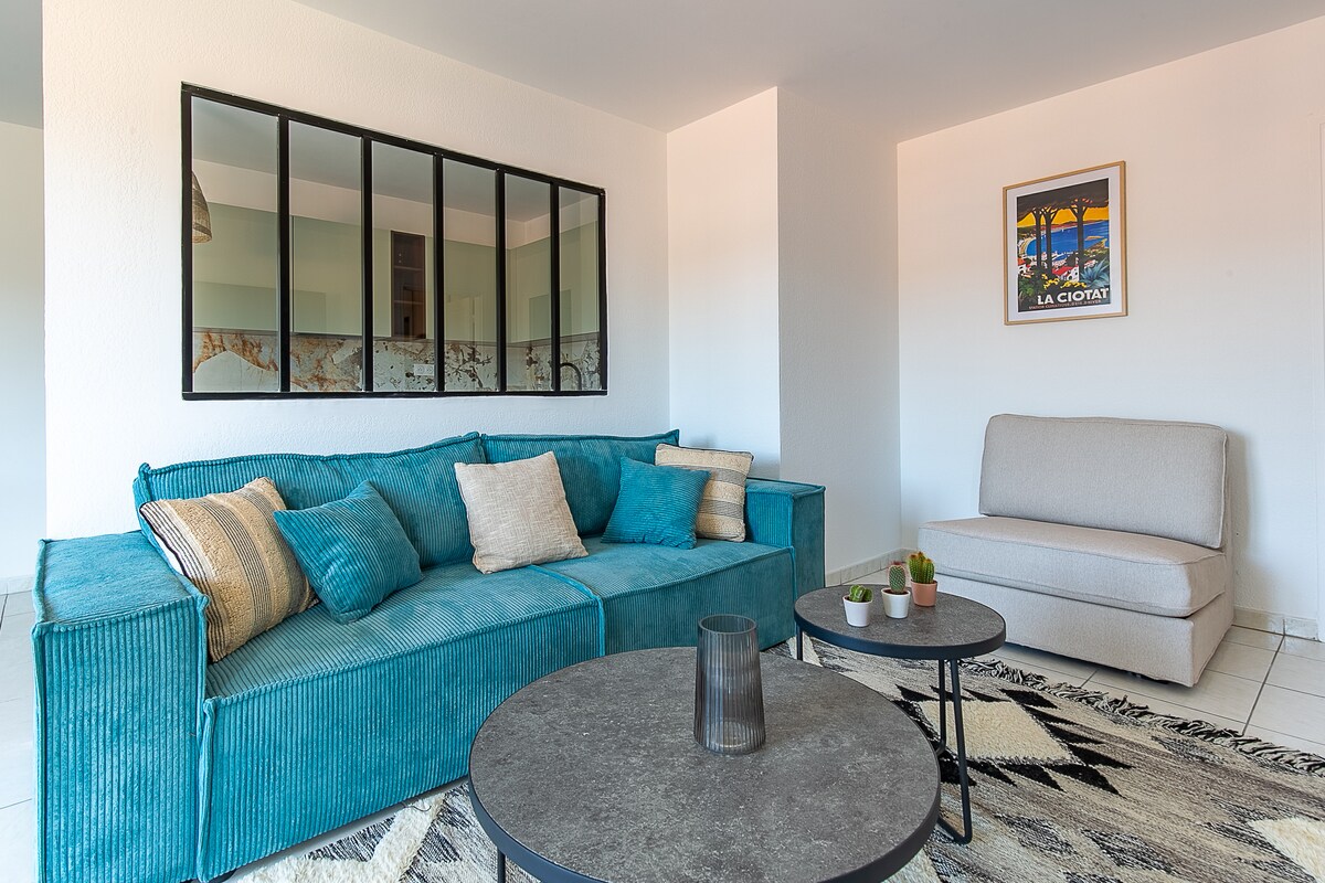 Élvezd ezt a lakást, ahonnan lenyűgöző kilátás nyílik az öbölre, amelyet a „világ legszebb öbölének” szavaztak. A Fontsainte szomszédságában található szálláshely 100 méterre található a tengertől és a Corniche Arène Cros-tól. Ezt az otthont úgy alakítottuk ki, hogy minden helyiségből élvezhesd a kilátást, beleértve a zuhanyzót is (a kényelmed érdekében redőnyt biztosítunk). Akár pihenni szeretnél, és megcsodálni a tengert, akár a La Ciotat báját szeretnéd felfedezni, ez a stúdió tökéletes hely egy emlékezetes tartózkodáshoz.