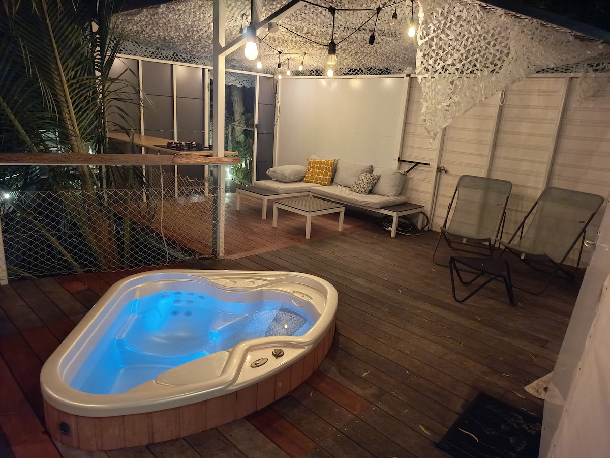 Egyedülálló élmény egy egyedi helyen! Gyere és töltsd fel az akkumulátoraidat ebben a stílusos lakberendezési otthonban, a lenyűgöző kilátással rendelkező privát pezsgőfürdőben, a természet szívében, mindössze 20 percre Nouméától.