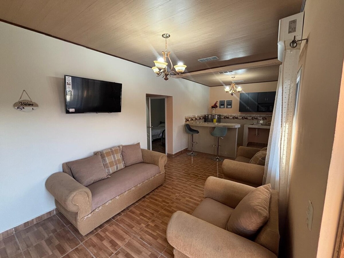 Teljesen új, otthonos és modern társasházi lakások. Teljesen felszerelt a vállalkozásodhoz vagy családi tartózkodásodhoz, felszerelt konyhával, meleg vízzel, légkondicionálóval, mennyezeti ventilátorral és bano kényelmi szolgáltatásokkal rendelkezik. Két hálószobával rendelkezik, amelyekben három ember fér el, a nappaliban pedig egy kanapéágy található. Mosókonyha, biztonságos és ingyenes parkolás. Éjjel-nappali megfigyelő kamerarendszerrel, elektromos kerítéssel és automatikus kapuval is rendelkezik.