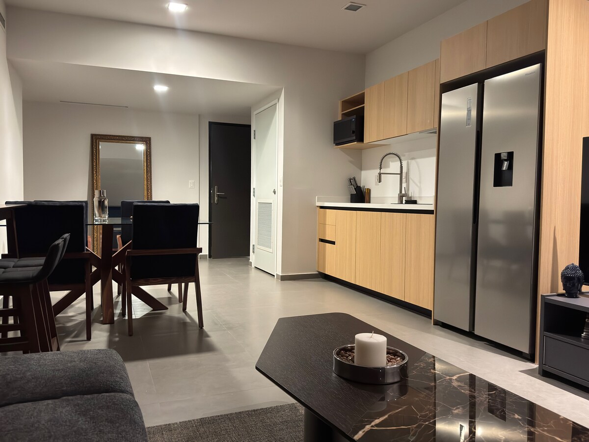 Gyönyörű lakás teljesen felújított San Pedro Garza Garcia legjobb részén. Gyakorlatilag teljesen új (ágyak, lepedők, matracok, redőnyök, hűtőszekrény, mosógép, szárítógép, nappali, étkező, készülékek, éghajlat). Wifi, intelligens TV 80 csatornával, minden szobában mini-split és egy szép erkély gyönyörű kilátással a szálloda területére.