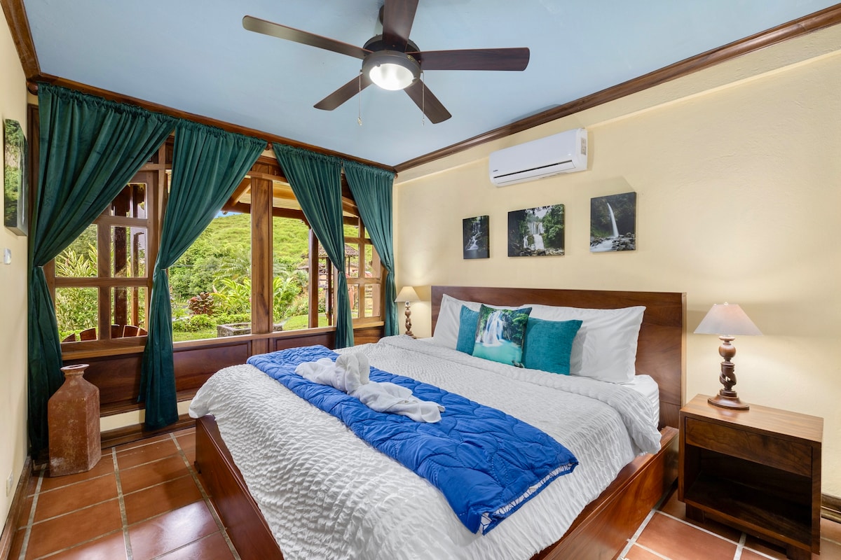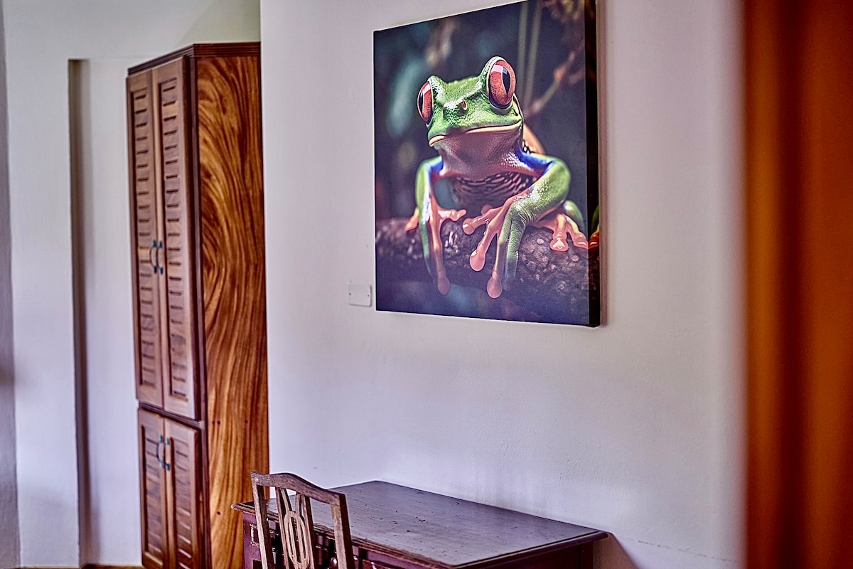 A Frog Room a Majestic Lodge egyik luxuslakosztálya, amely egy luxusbirtok az Arenal-tótól délre, ahol az utazók pihenhetnek a Costa Rica esőerdőjében tett kalandjaik után. Ebben a zárható szobában king méretű ágy található csúcskategóriás lepedőkkel, Smart TV-vel és saját fürdőszobával. A Majestic Lodge egy panzió, de a közös konyha kávéfőzőt kínál, és minden, amire szükséged van az ízletes ételek elkészítéséhez, hogy élvezhesd az úszómedence és a jacuzzi melletti gyönyörű külső teraszon.