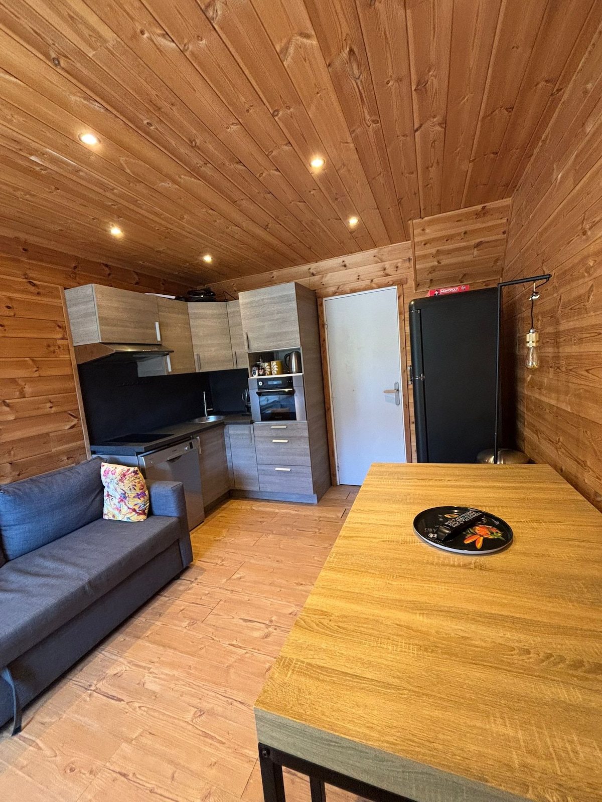 Elbűvölő stúdióapartman, amelyet mamutfenyőfából újítottak fel. Egy fő helyiségből áll, amely átalakítható „nappaliból/étkezőből” két hálószobás (140 fali ágy), felszerelt és felszerelt konyhából, zuhanyzóból és WC-ből, a hegyre néző erkélyből, valamint a túra- és síútvonalakból és egy síszobából áll. Az apartman az üdülőhely bejáratánál található, 200 méterre az első sílifttől (Pont de Labrau) és teniszezőtől, és 5 perc sétára a központtól.