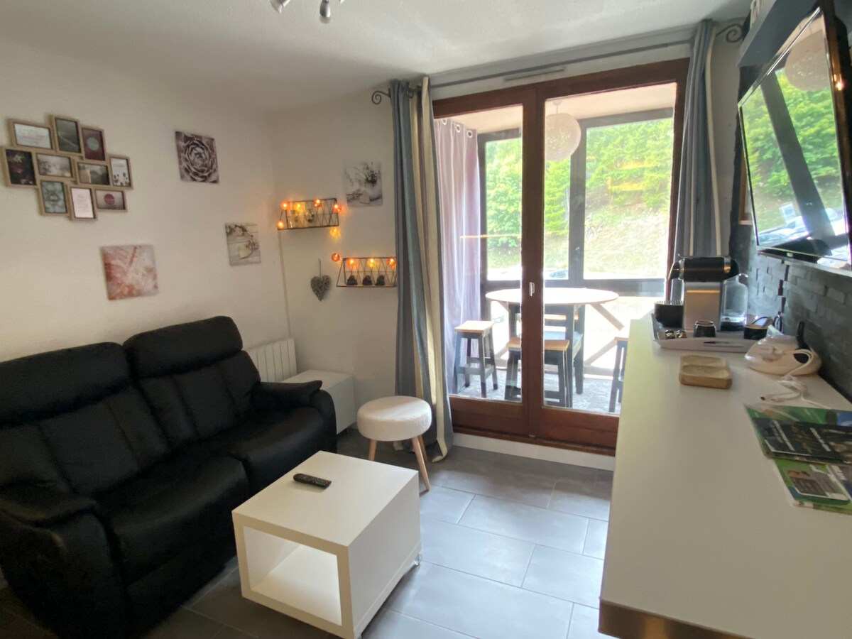 Tágas, kényelmes, teljesen felújított, 38 m2-es stúdió 8 m2-es loggia terasszal; Gyönyörű kilátás a hegyekre. Privát parkolás; Wi-Fi; csendes. Teljesen felszerelt konyha;Fagyasztó hűtőszekrény, mosogatógép, indukciós főzőlap, többfunkciós sütő, kávéfőző, kenyérpirító, raclette és fondue-készletek; Smart TV. Hegyi sarok; külön vécé Nagy délnyugati loggia expo terasz asztallal, székekkel, pihenőszékkel, nagyszerű kilátással. Quartier Etoiles 1800m; at the start of the slopes!